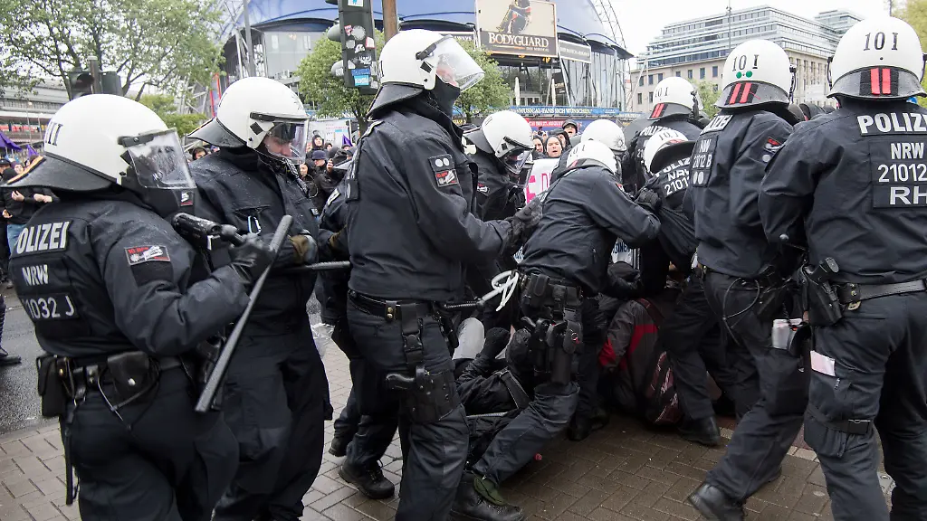 Zum Auftakt des AfD-Bundesparteitags in Köln ist die Polizei mit einem Großaufgebot gegen teils gewaltbereite Demonstranten aus dem linksextremen Spektrum vorgegangen. Zwei Beamte wurden einem Polizeisprecher zufolge bei Attacken von Gegendemonstranten verletzt. Die Polizei berichtete zudem von Steinwürfen auf Einsatzkräfte. Zur Zahl der Festnahmen und möglichen Verletzten auf Seiten der Demonstranten konnte der Sprecher zunächst keine Angaben machen. Insgesamt protestierten offiziellen Angaben nach mehr als 10.000 Menschen gegen die Rechtspopulisten.