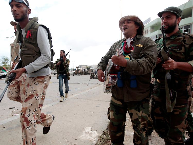 Rebellen-Kämpfer bei Straßengefechten mit den Getreuen von Muammar al-Gaddafi in Sirte.