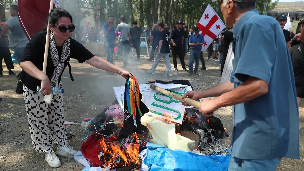 Im konservativen Georgien kommt es immer wieder zu Angriffen auf die LGBTQ-Community. Nun attackieren Tausende Rechtsextreme eine Veranstaltung in der Hauptstadt Tiflis und verbrennen Regenbogen-Flaggen. Die Organisatoren machen die Regierung mitverantwortlich.