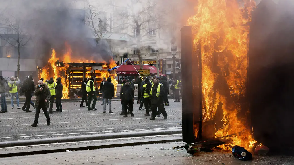 Am Samstag war es bei "Gelbwesten"-Protesten rund um die Pariser Prachtmeile Champs-Élysées wieder zu heftiger Gewalt gekommen. Randalierer plünderten Läden und setzten Autos in Brand. Sie errichteten brennende Barrikaden und zündeten eine Bankfiliale an. Das Feuer breitete sich auf das gesamte Gebäude aus, elf Menschen wurden verletzt, eine Frau und ihr Baby mussten aus dem brennenden Haus gerettet werden. Innenminister Christophe Castaner warf den Brandstiftern vor, weder Demonstranten noch Randalierer zu sein, sondern "Mörder". Einige Teilnehmer seien offensichtlich "nur angereist, um Sachen zu zerstören". Etwa 1500 "Ultragewalttätige" sickerten nach seinen Worten in die Reihen der "Gelbwesten" ein.