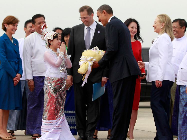 Als Obama in Birma ankam empfingen Tausende Schaulustige den US-Präsident. Obama traf Präsident Thein Sein in der Hafenstadt Rangun, der dafür seine Teilnahme am Gipfel der Südostasiatischen Staatengemeinschaft Asean im Kambodscha unterbrechen musste. Die Reformschritte, die Thein Sein eingeleitet habe, seien erst der Anfang eines langen Wegs, sagte Obama anschließend. "Aber wir glauben, dass der Prozess demokratischer und wirtschaftlicher Reformen, die hier eingeleitet worden sind, Birma unglaubliche Entwicklungschancen öffnet."