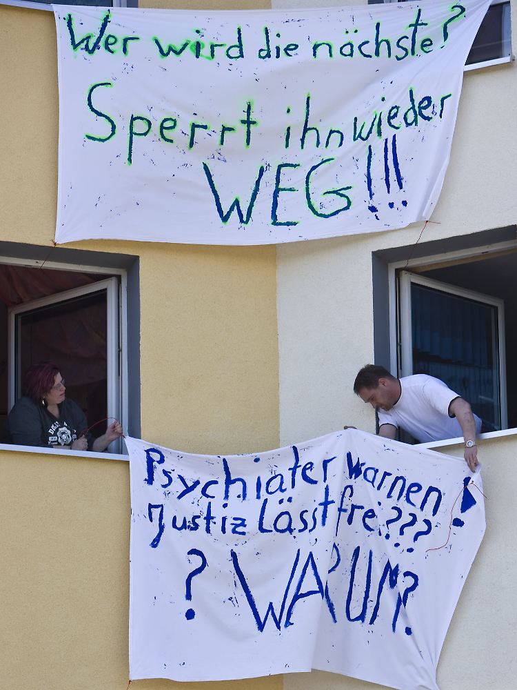 2009, Randerath in Nordrhein-Westfalen: Die Einwohner protestieren gegen die Anwesenheit des entlassenen Sexualstraftäters Karl D.