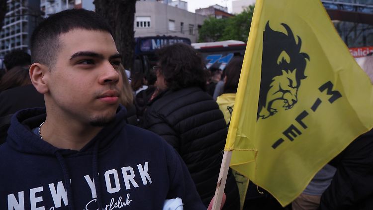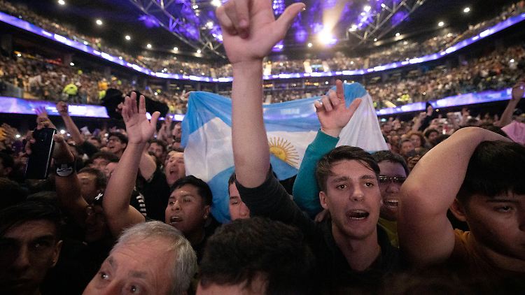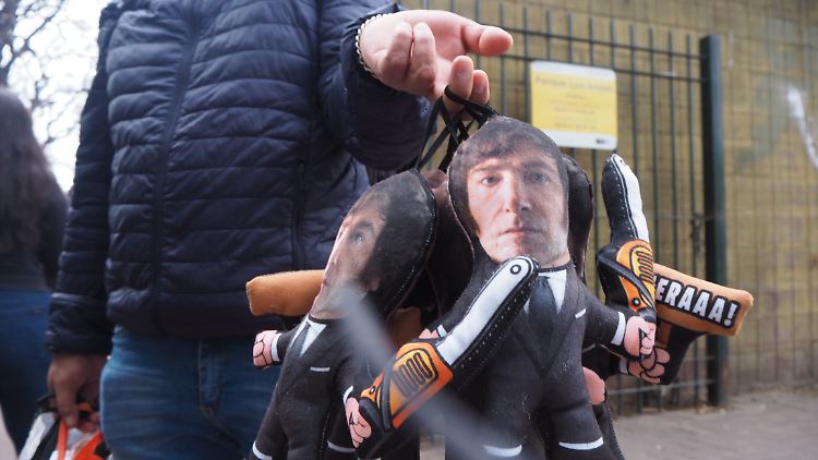 Am heutigen Mittwoch findet in der nahen Konzerthalle der Wahlkampfabschluss von Milei und seiner Partei La Libertad Avanza ("Die Freiheit schreitet voran") statt, am Sonntag wird ein neuer Staatschef in Argentinien gewählt. Eine Frau zündet einen gelben Bengalo, eine Kapelle spielt bekannte Fußballmelodien, Verkäufer bieten Fahnen, T-Shirts oder Plüschfiguren des Ökonomen an, die eine Kettensäge, einen Hammer oder Geld in der Hand haben. Sie wollen schon jetzt an der Vision des 52-Jährigen verdienen.