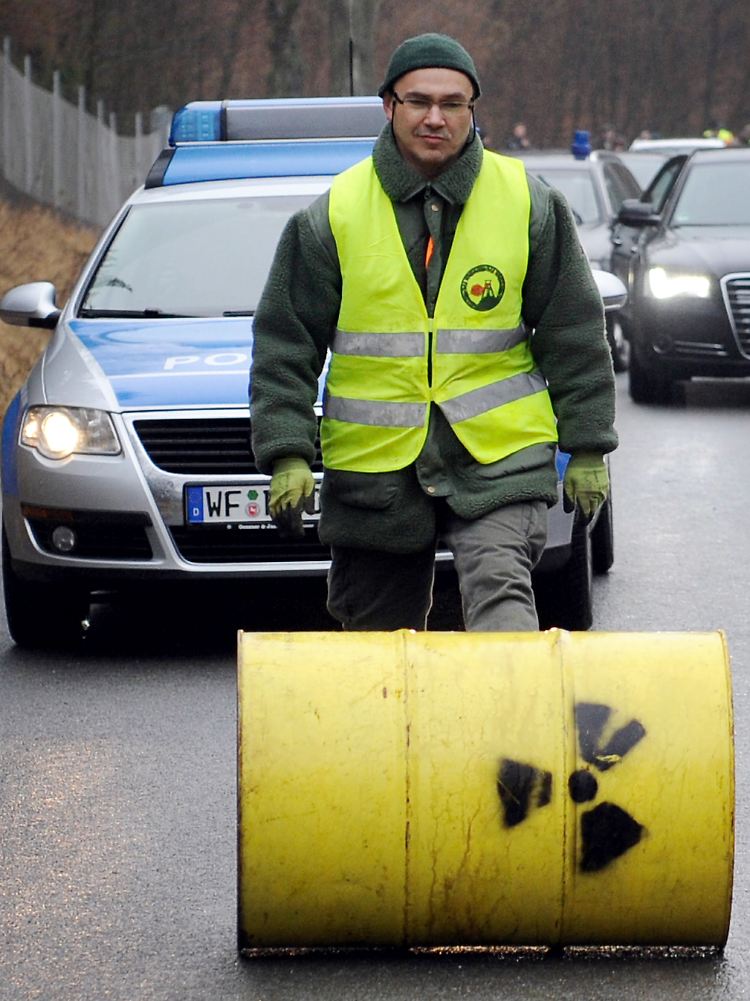 Rund 80 Atomkraftgegner empfingen Minister Röttgen vor der Asse in Wolfenbüttel.
