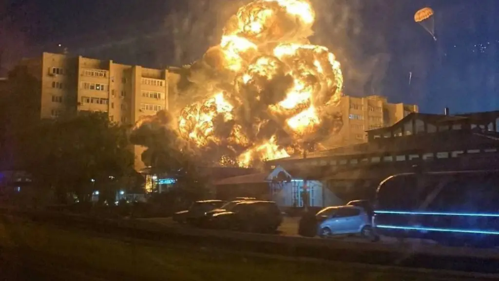 Nahe der Grenze zur Ukraine stürzt ein russisches Militärflugzeug über einem Wohngebiet ab. Auf den Videos in sozialen Netzwerken sind gewaltige Explosionen in der Stadt Jeisk zu sehen. Ein Wohnblock steht in Flammen.