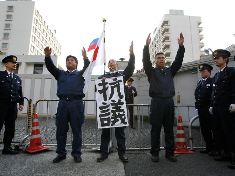 Japanischen Medienberichten zufolge hatten japanische Ultranationale vor der russischen Botschaft in Tokio eine russische Flagge über den Boden gezogen und zerrissen und die Rückgabe der "Nordterritorien", wie die vier Südkurileninseln in Japan genannt werden, gefordert. Im Gegenzug protestierten Jugendorganisationen in Moskau vor der japanischen Botschaft.