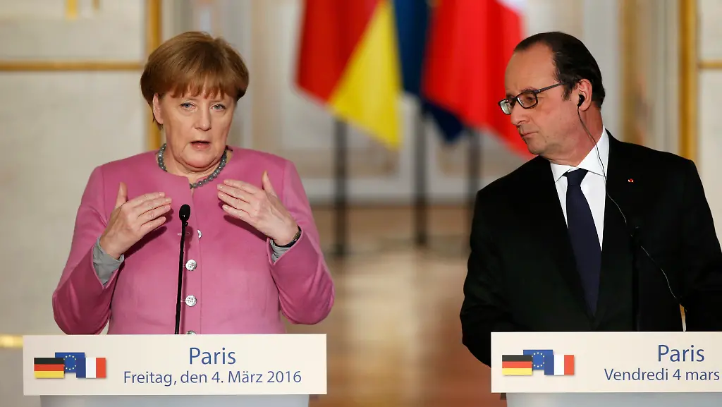 Auch in der Flüchtlingskrise demonstrierten Merkel und Hollande Einigkeit. Mit Blick auf den Sondergipfel der EU sowie der Türkei am Montag sagte Hollande: "Angesichts der Flüchtlingsfrage haben Deutschland und Frankreich dieselbe Antwort: Europa. Europa muss in der Lage sein, die erwarteten Lösungen herbeizuführen."