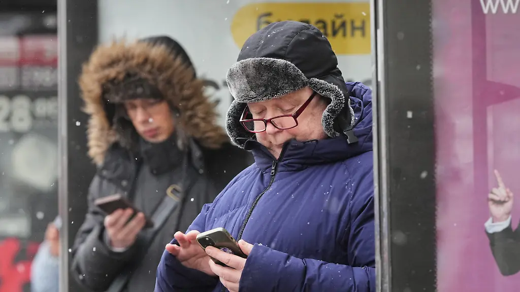Menschen-schauen-auf-ihre-Smartphones-an-einer-Bushaltestelle-Die-russische-Telekom-Aufsichtsbehoerde-Roskomnadsor-hat-weitere-Beschraenkungen-gegen-verschiedene-Messenger-Dienste-angekuendigt-darunter-auch-Telegram