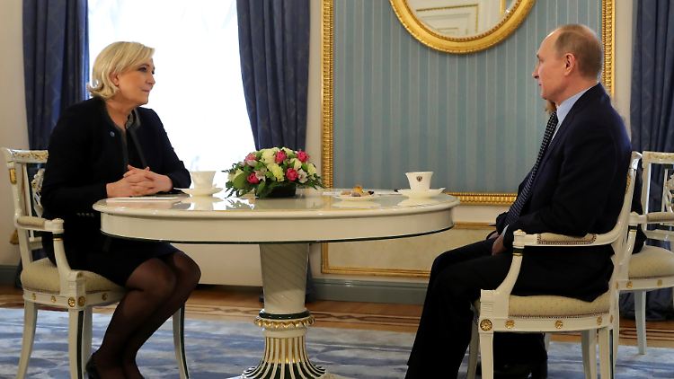 Dass Russlands Präsident Wladimir Putin lieber Marine Le Pen im Élysée-Palast sehen würde, ist ein offenes Geheimnis. Ende März hatte er die Präsidentschaftskandidatin des Front National (FN) im Kreml empfangen - offiziell natürlich, ohne sich auf ihre Seite zu schlagen. Für Furore sorgte allerdings der russische Sender LifeNews, der ein Bild vom Treffen auf Twitter teilte und es mit der Schlagzeile "Moskau wird Le Pen helfen, Wahl zu gewinnen" betitelte. Der Tweet wurde wenig später wieder gelöscht.