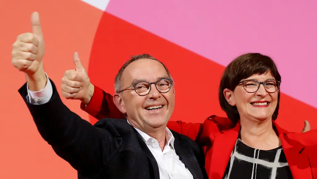 Die SPD werde nun zunächst versuchen, auf Grundlage des Koalitionsvertrags mit der Union "neue Vorhaben zu verhandeln", sagte Esken. Dies lasse der Koalitionsvertrag ausdrücklich zu. Als Beispiele nannte sie strengere Klimaschutzmaßnahmen und mehr öffentliche Investitionen. Die beiden designierten Parteichefs machten deutlich, dass sie auf dem SPD-Parteitag am kommenden Wochenenden in Berlin noch keine Grundsatzentscheidung über die Fortsetzung der Koalition herbeiführen wollen. Der Parteitag solle vielmehr debattieren, "wie wir an die Union herantreten, um solche Veränderungen am Koalitionsvertrag herbeizuführen", sagte Esken.