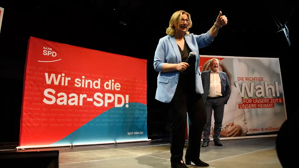 Mit einem imposanten Ergebnis löst die SPD bei der Landtagswahl im Saarland die CDU nach mehr als zwei Jahrzehnten als stärkste Partei ab: Neue Ministerpräsidentin wird die bisherige Vize-Regierungschefin und Wirtschaftsministerin Anke Rehlinger. Selbst eine sozialdemokratische Alleinregierung ist an der Saar nun möglich. Einen bitteren Abend erlebten dagegen die deutlich abgestürzte CDU und Linke, letztere flog ganz aus dem Parlament. FDP und Grüne scheiterten knapp an der Rückkehr in den Landtag - den Grünen fehlten gerade einmal 23 Stimmen.