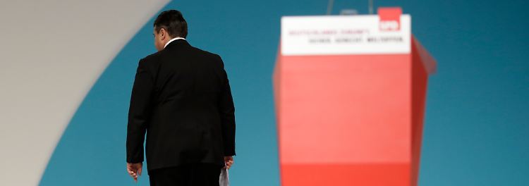 Um 15.20 Uhr erschüttert eine Zahl den SPD-Parteitag in Berlin. 74 Prozent. Nur 456 der insgesamt 620 SPD-Delegierten haben für Parteichef Sigmar Gabriel gestimmt. Es ist das schlechteste Ergebnis eines SPD-Chefs seit 1995, als Oskar Lafontaine 62,6 Prozent holte. Gabriel fährt das zweitschlechteste in der Nachkriegsgeschichte ein.