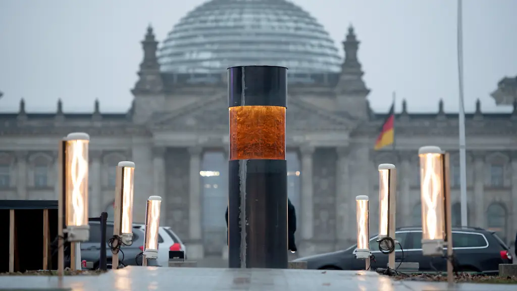 Mahnmal in Nähe des ReichstagsSäule mit Holocaust-Asche errichtet
