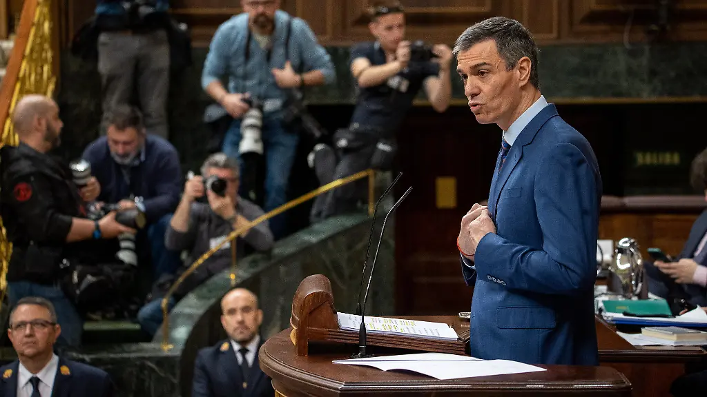 Pedro Sánchez spricht vor Abgeordneten über den Krieg in Nahost. (Foto: picture alliance / Sipa USA)