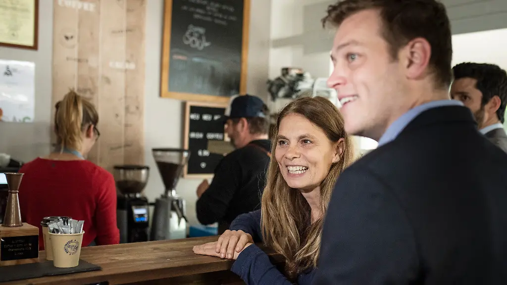 Für ihren Wahlkampftag in der Stahlstadt Linz hat die Partei mit dem Südbahnhofmarkt ein grünes Biotop ausgesucht, in dem ihre Themen an jeder Ecke präsent sind: gesunde Ernährung, nachhaltige Landwirtschaft, regionales Handwerk. In den eingeschossigen Marktbaracken haben sich lokale Fleischer ebenso eingemietet wie junge, hippe Craft-Beer-Brauer. Wiener, ganz leger in Blue Jeans und roten Turnschuhen, kann mit allen Standbeschäftigten gut. Auf Kurzbesuch beim tätowierten Hipster-Barista in der "Kaffeerösterei Kurt Traxl" holt sie sich ein High Five ab, als sie erzählt, dass sie ihren Kaffee zu Hause selber mahlt. Eine Angestellte bittet freudestrahlend um ein Selfie. "Machen wir", sagt Wiener. "Aber sag bitte Du zu mir."
