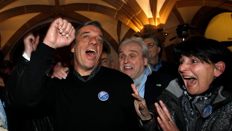 Theo Steegmann (l.), der Sprecher Bürgerinitiative "Neuanfang für Duisburg", freut sich über die Abwahl von OB Sauerland.