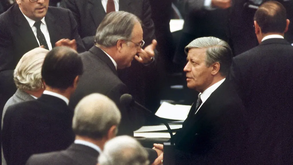 Bilder voller Symbolik: Bleich und abgespannt sitzt Schmidt auf der Regierungsbank. Die von ihm geführte SPD-FDP-Koalition hat abgewirtschaftet. Kohl kann es dagegen gar nicht erwarten, endlich die harte Oppositionsbank zu verlassen. Dabei steht der 52-Jährige Christdemokrat vor schwierigen Aufgaben. Nach stundenlanger Debatte ist der Machtwechsel vollzogen: Helmut Kohl erhält die Stimmen der Unionsabgeordneten und der meisten FDP-Parlamentarier und ist der sechste Bundeskanzler. Zum ersten Mal in der verläuft ein konstruktives Misstrauensvotum erfolgreich. Schmidt gratuliert seinem Nachfolger, danach kommt - zähneknirschend.