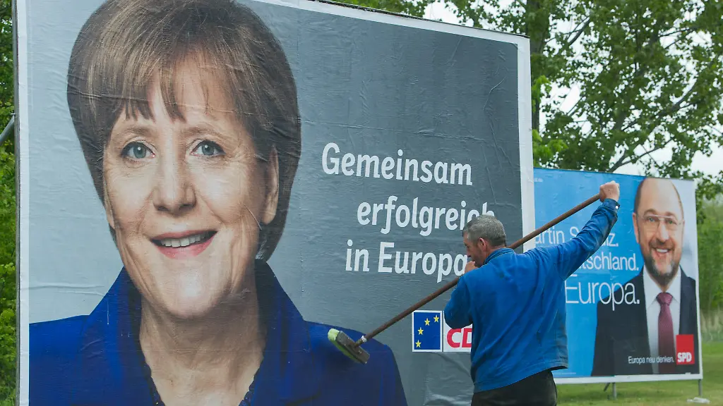Der Spitzenkandidat der Sozialdemokraten bei der Europawahl am 25. Mai, Martin Schulz, hat den Europawahlkampf der CDU als irreführend kritisiert. "Ich finde es bemerkenswert, dass die CDU weder ihren nationalen noch den EU-weiten Spitzenkandidaten plakatiert, sondern stattdessen Frau Merkel an den Laternenpfählen hängt", sagte Schulz der "Bild am Sonntag". Das sei ein "Versuch, die Leute für dumm zu verkaufen, denn Frau Merkel steht bei der Europawahl nicht zur Wahl."