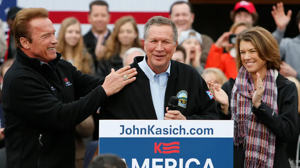 Der Republikaner John Kasich hat im Vorwahlrennen um die US-Präsidentschaft einen mächtigen Verbündeten gewonnen: "Terminator" Arnold Schwarzenegger lässt jetzt im Wahlkampf für ihn die Muskeln spielen. Der Schauspieler und Ex-Gouverneur von Kalifornien trat am Sonntag zusammen mit dem Gouverneur von Ohio auf und machte sich für ihn als Spitzenkandidaten der Konservativen stark.