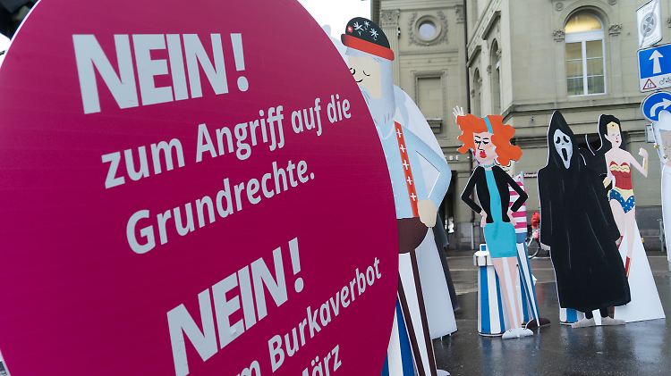 Die Plakate hängen im ganzen Land: Zu sehen ist eine Frau vor einem roten Hintergrund, verhüllt mit einem schwarzen Nikab, sie trägt eine schwarze Sonnenbrille. "Extremismus stoppen! Verhüllungsverbot Ja", ist in großen Buchstaben darauf zu lesen. Auf einem anderen Plakat findet sich eine Nikabträgerin neben einer unverschleierten Frau mit langem Haar. Dazu der Slogan "Emanzipation statt Stoffgefängnis".