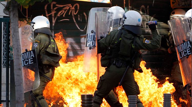 Vor den Luxus-Hotels am Syntagma-Platz in der Nähe des Parlamentes kam es zu Zusammenstößen zwischen der Polizei und rund 500 Demonstranten. Einige von ihnen bewarfen die Polizei und das Gebäude der Bank von Griechenland mit Farbbeuteln, Steinen, Orangen und Flaschen. Bushaltestellen wurden demoliert, Schaufensterscheiben gingen zu Bruch. Die Polizei ging mit Tränengas gegen die Randalier vor. "Die Demonstranten warfen drei Brandsätze", sagte ein Polizeisprecher.