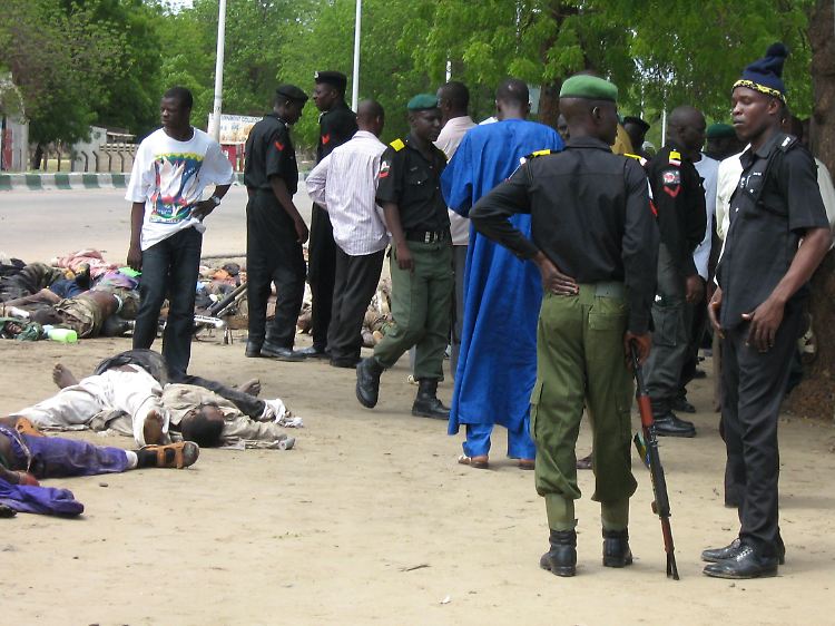 Bei den Gefechten hatte die Armee in der Nacht zum Donnerstag rund 300 Rebellen getötet, die von den Behörden als "Taliban" bezeichnet werden. Damit stieg die Zahl der seit Beginn der Kämpfe am Sonntag getöteten Menschen auf mindestens 600. In Maiduguri befindet sich das Hauptquartier der islamistischen Sekte, die sich den afghanischen Taliban verbunden fühlt und für einen islamischen Gottesstaat im Norden Nigerias kämpft. Nach Polizeiangaben wurde auch der Vize-Chef der Sekte, Abubakar Shekau, auf der Flucht getötet.