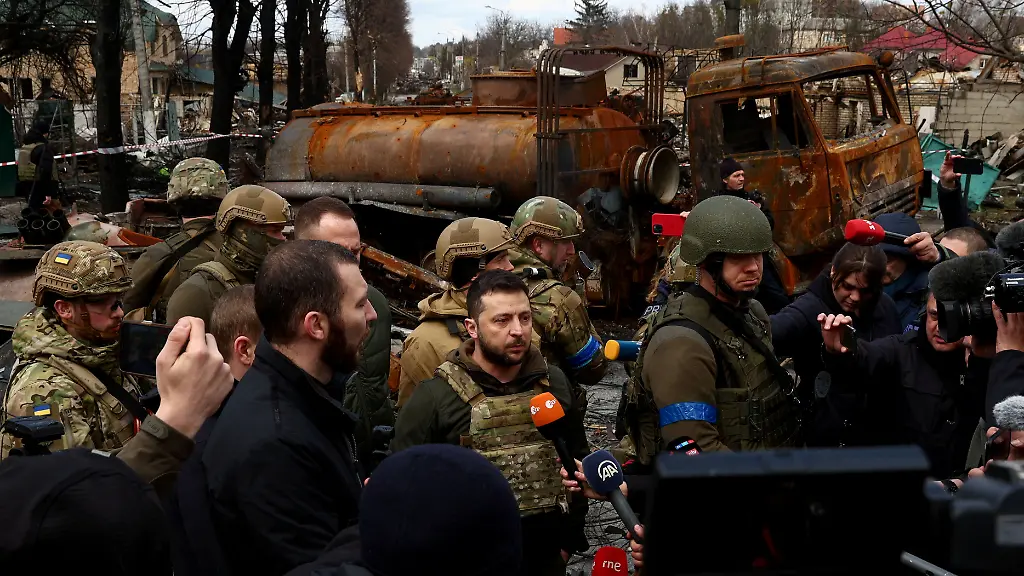 Selenskyj inspizierte die Straße, auf der eine russische Kolonne angegriffen wurde, und sprach mit Anwohnern. Er wiederholte, dass Russland in der Ukraine Kriegsverbrechen verübt habe. "Die Welt wird die Morde in Butscha als Genozid werten." Er habe nun Butscha, Irpin und Stojanka nach der russischen Besetzung gesehen. Man werde alles dafür tun, um diese Städte wieder zum Leben zu erwecken, so Selenskyj.