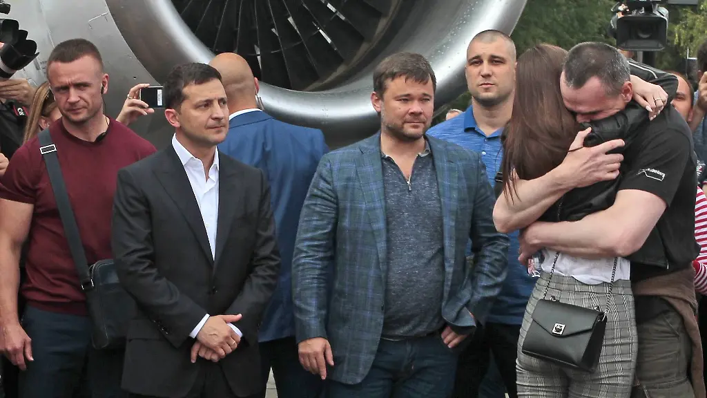 Kurz darauf kann der 41-Jährige als Erster die Ukrainer in ihrer Heimat begrüßen. Darunter ist der Regisseur Oleh Senzow, der wegen der angeblichen Vorbereitung von Terroranschlägen auf der von Russland annektierten Krim in Moskau zu 20 Jahren Haft verurteilt worden war. Ebenfalls an Bord sind die 24 ukrainischen Seeleute, die im November 2018 vor der Einfahrt ins Asowsche Meer nahe der Krim festgenommen wurden.