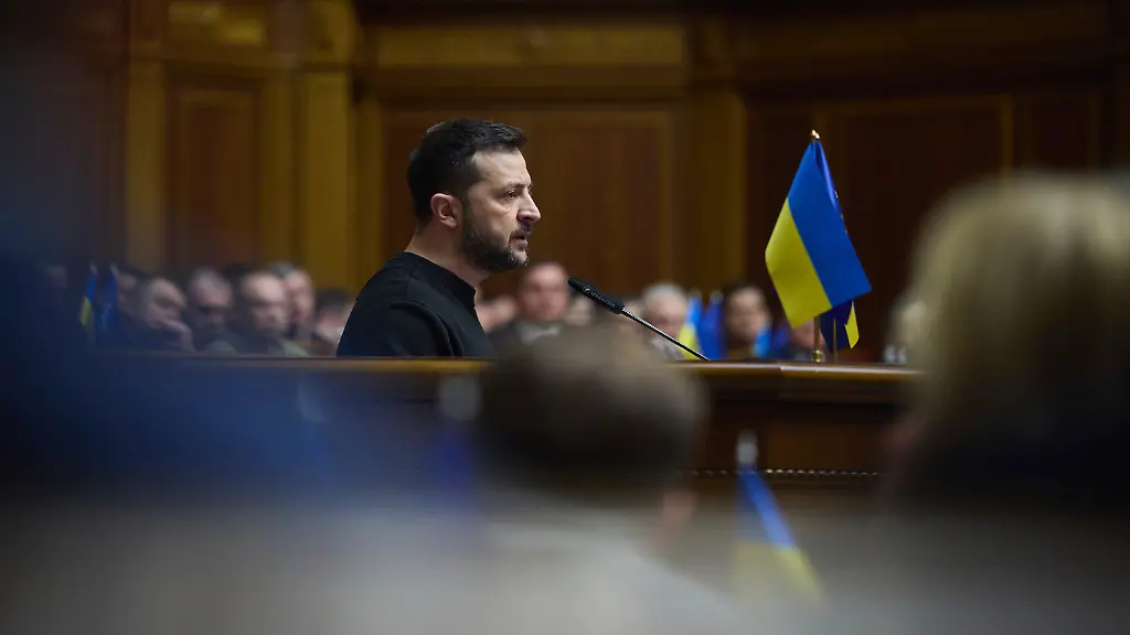 Der ukrainische Präsident Wolodymyr Selenskyj hat dem Parlament einen Plan zur Erhöhung der Widerstandsfähigkeit des von Russland angegriffenen Landes vorgestellt. "Selbst ohne Atomwaffen können wir konventionelle Instrumente der Eindämmung (Russlands) finden", sagte der Staatschef vor den Abgeordneten und der versammelten Landesführung.