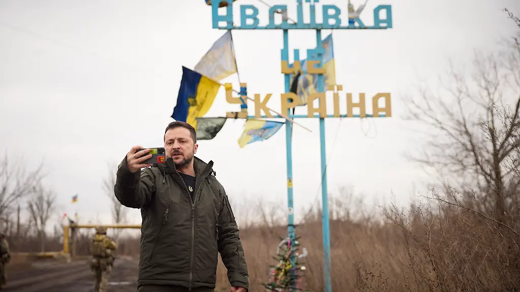 Besuch an der FrontSelenskyj zeigt sich in umkämpfter Stadt Awdijiwka