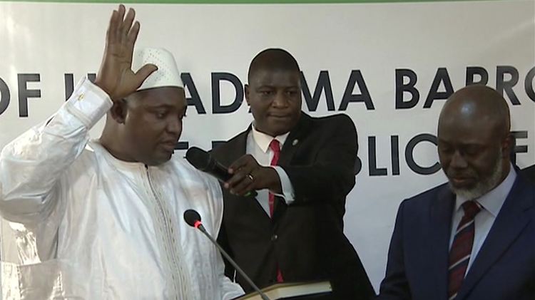 Kurz vorher war der Wahlsieger Adama Barrow als neuer Staatschef Gambias vereidigt worden. Barrow musste den Amtseid allerdings in der gambischen Botschaft im Senegal ablegen. Nun sollten alle Gambier zusammenstehen, um dem Land zu einem Neuanfang zu verhelfen, forderte er in der im staatlichen Fernsehen übertragenen Zeremonie. Seine Regierung werde sich für Reformen und eine Stärkung der Demokratie einsetzen, erklärte er.