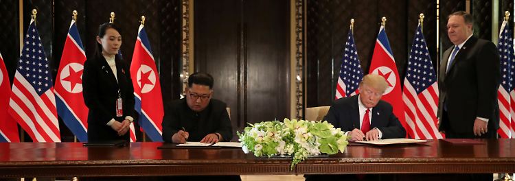 Nach mehrstündigen Beratungen in Singapur unterzeichnen Trump und Kim eine Vereinbarung. Die Denuklearisierung Nordkoreas solle "sehr schnell beginnen", sagt der US-Präsident.