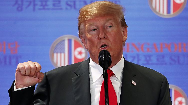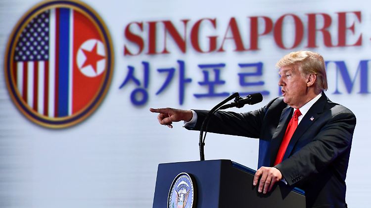 Trump spricht über den weiteren Verlauf des Friedensprozesses. Auch Südkorea und China sollten an der Unterzeichnung des Friedensvertrages beteiligt sein, sagt er. Über das Gespräch mit Kim sagt er noch einmal: "Es war eine herzliche Konversation." Auf ein Protokoll des Gespräches angesprochen sagt der Präsident, er brauche so etwas nicht. "Ich muss nichts verifizieren. Ich habe ein großartiges Erinnerungsvermögen." Dann ist die Pressekonferenz beendet.