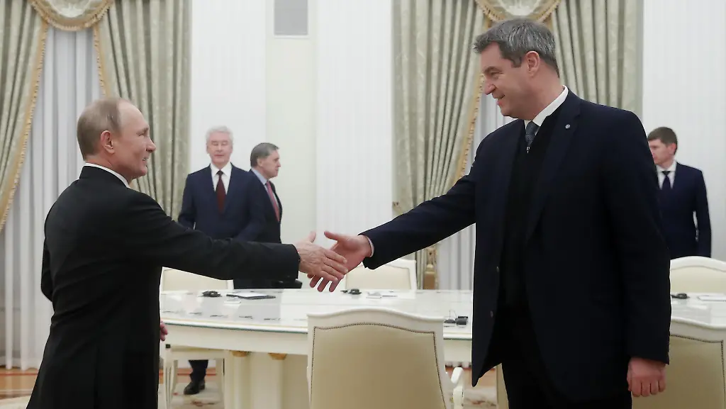 Am Morgen hatte Söder seine Moskaureise mit einem Gang über den verschneiten Roten Platz mitsamt Basilius-Kathedrale und einer Kranzniederlegung am Grabmal des unbekannten Soldaten fortgesetzt. Für den 53-Jährigen ist es die erste Russlandreise seit seiner Wahl zum CSU-Vorsitzenden und bayerischen Regierungschef. Söder führt mit seinem Treffen mit Putin eine lange Tradition von Besuchen aus dem Freistaat fort. Zuletzt hatte Horst Seehofer 2017 den Kreml besucht, 30 Jahre nach dem Premierenbesuch von Franz Josef Strauß im selbst gesteuerten Flieger.