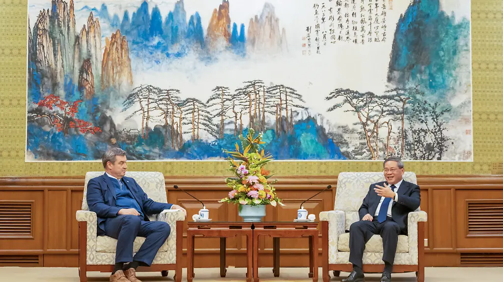 Söder ist der erste deutsche Ministerpräsident, der seit dem Ende der Corona-Pandemie in China zu Gast war. Die Begegnung mit Li Qiang war eine Art Gegenbesuch: Im vergangenen Jahr hatte der chinesische Ministerpräsident auf einer kurzen Europa-Tour einen Stopp in Bayern eingelegt. Er war damals in der Münchner Residenz von Söder empfangen worden.