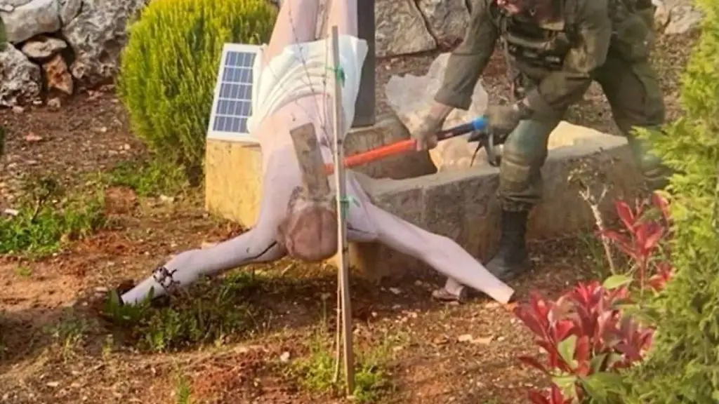 Am Sonntag veröffentlichte die Armee ein Foto. Es zeigt einen Mann in israelischer Armeeuniform, der mit einem Hammer auf eine vom Holzkreuz gefallene Jesusfigur einschlägt. Die Armee teilte mit, es sei nach einer ersten Untersuchung festgestellt worden, dass das Bild einen Soldaten im Südlibanon zeige.