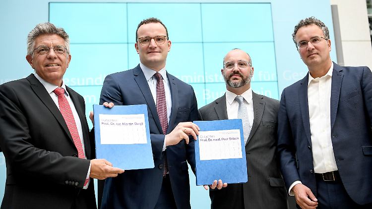 Minister Spahn (2.v.l.) sowie die Experten Burgi (l.), Litwinschuh-Barthel und Briken (r.) bei der Vorstellung der Gutachten.