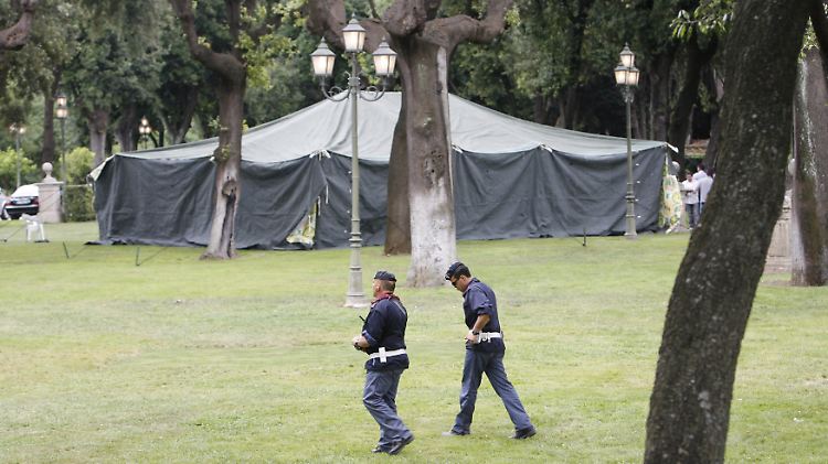Juni 2009 in Rom: Auf dem Gelände der Villa Doria Pamphili wird ein Zelt für die Ankunft des libyschen Staatschefs vorbereitet.
