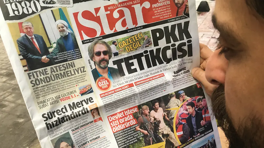 Regierungsnahe Medien in der Türkei haben den dort inhaftierten "Welt"-Korrespondenten Deniz Yücel als "Türkei-Feind" verunglimpft und ihn in die Nähe von Terroristen gerückt. Die Zeitung "Star" schrieb auf ihrer Titelseite über den deutsch-türkischen Reporter: "Kein Journalist - PKK-Auftragsmörder" (PKK tetikcisi). Nach der Definition der Gesellschaft für türkische Sprache bezeichnet das Wort "tetikci" einen Auftragsmörder, es kann sinngemäß aber auch als Marionette verstanden werden.
