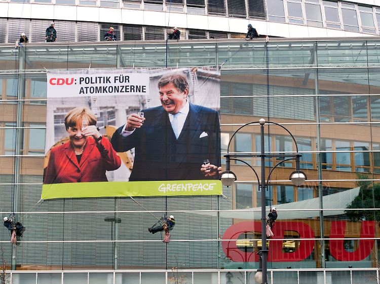 Greenpeace-Aktion an der CDU-Parteizentrale in Berlin am Tag der Laufzeiten-Verlängerung.