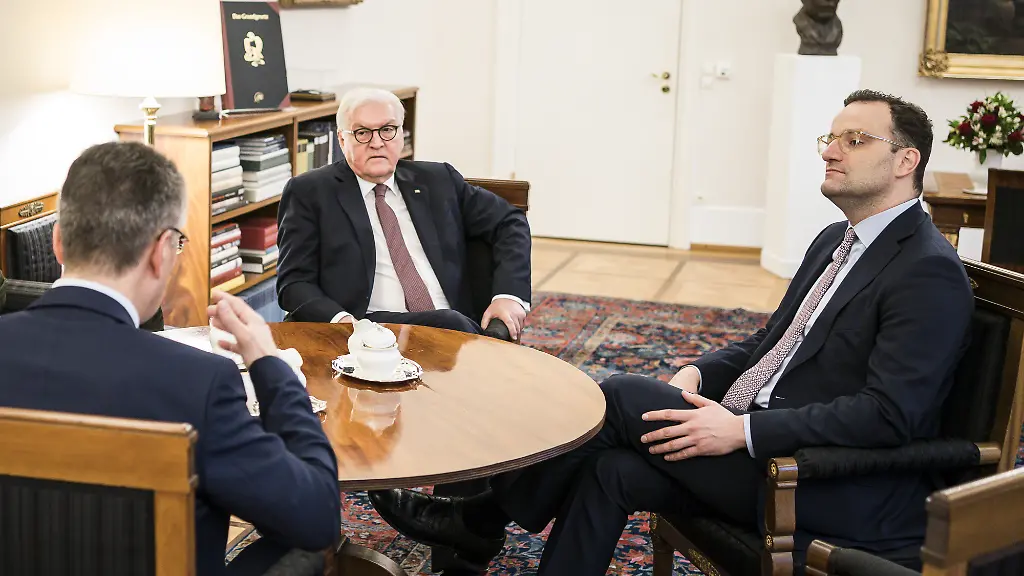 Steinmeier hatte sich zuvor mit Bundesgesundheitsminister Jens Spahn und dem Präsidenten des Robert-Koch-Instituts, Lothar Wieler, getroffen und sich von ihnen über den Verlauf der Epidemie unterrichten lassen. "Das Virus fordert unseren Staat", sagte Steinmeier anschließend weiter. "Das Virus fordert auch jeden Einzelnen von uns." Gefährdet seien in allererster Linie alte Menschen und chronisch Kranke. "Sie müssen wir schützen. Ihnen müssen wir unsere Solidarität zeigen. Das ist die Aufgabe der Stunde. Das ist die Probe für unseren gesellschaftlichen Zusammenhalt", sagte Steinmeier. Deshalb sei nicht nur die Politik gefragt. "Jeder Einzelne muss sich jetzt fragen: Was kann ich tun, um die Ausbreitung zu verlangsamen? Was kann ich tun, um Alte, Kranke und Schwache zu schützen? Was kann ich tun, meine Eltern und Großeltern, meine Arbeitskollegen zu schützen?"