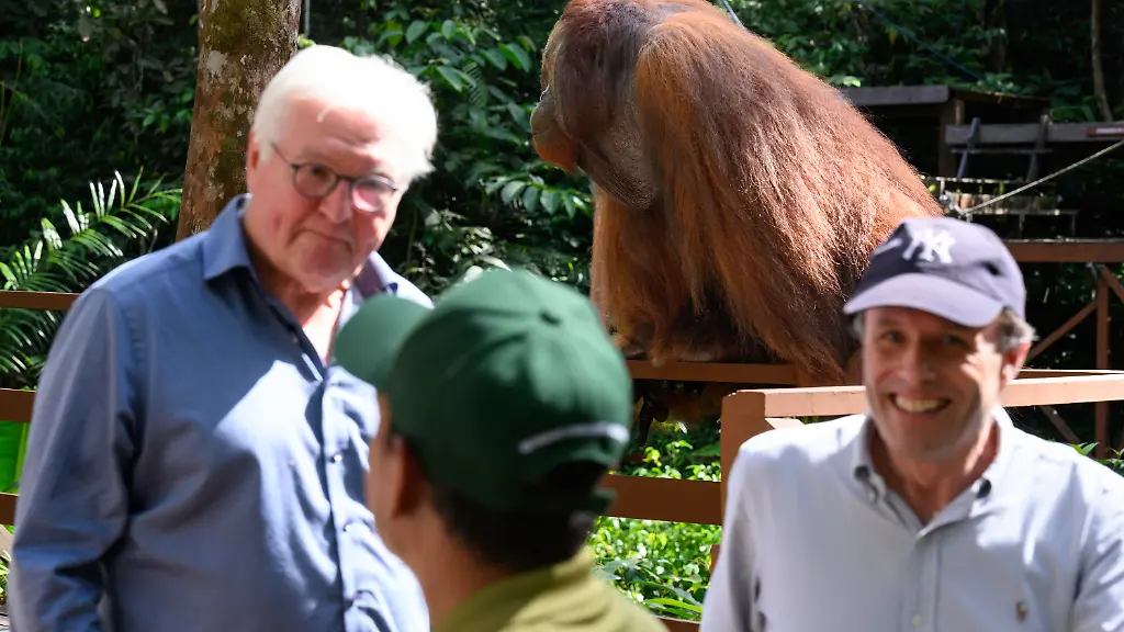 Orang-Utans zu sehen, das war die Hoffnung von Bundespräsident Frank-Walter Steinmeier und seiner Frau Elke Büdenbender, als sie das Semenggoh Wildlife Center im malaysischen Teil der Insel Borneo besuchten. Dass die Tiere ihnen so nah kommen, war allerdings nicht eingeplant.