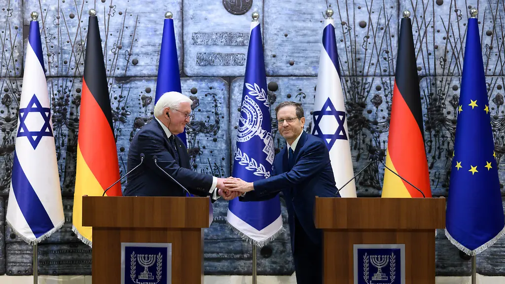 Islamistische Terroristen aus dem Gazastreifen waren am 7. Oktober nach Israel eingedrungen und hatten dort mehr als 1200 Menschen getötet. Etwa 240 Geiseln wurden verschleppt, auch mehrere Deutsche. Israel reagierte mit massiven Luftangriffen, einer Blockade des Gazastreifens und begann Ende Oktober eine Bodenoffensive. Herzog nannte Steinmeier einen "wahren Freund". Beide kennen sich seit vielen Jahren. "Ihr Besuch ist Ausdruck des festen Bündnisses zwischen unseren Ländern", sagte Herzog, der die Hamas als "Bestie" und "Ungeheuer" bezeichnete. Er dankte Steinmeier und der Bundesregierung für die "klare Haltung" zum Recht Israels sich zu verteidigen - im Gegensatz zu den Anführern anderer EU-Länder, die gegenüber Israel eine "doppelte Moral" und "Heuchelei" zeigten, so Herzog.