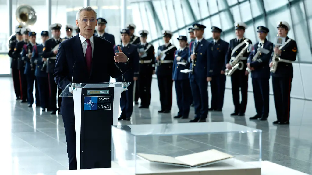 Bei einer Feier zum 75. Jahrestag der Gründung der NATO hat Generalsekretär Jens Stoltenberg den Zusammenhalt zwischen Nordamerika und Europa angemahnt. "Zwei Weltkriege, der Kalte Krieg und jede Herausforderung, mit der wir seitdem konfrontiert waren, haben uns gelehrt, dass wir einander brauchen", sagte der Norweger bei der Zeremonie mit den Außenministern der Bündnisstaaten in Brüssel. "Ich glaube nicht an Amerika allein", sagte Stoltenberg. "Genauso wenig wie ich an Europa allein glaube. Ich glaube an Amerika und Europa zusammen", betonte er in seiner Rede. Unerlässlich sei aber eine "gerechte Lastenteilung" bei den Verteidigungsausgaben.