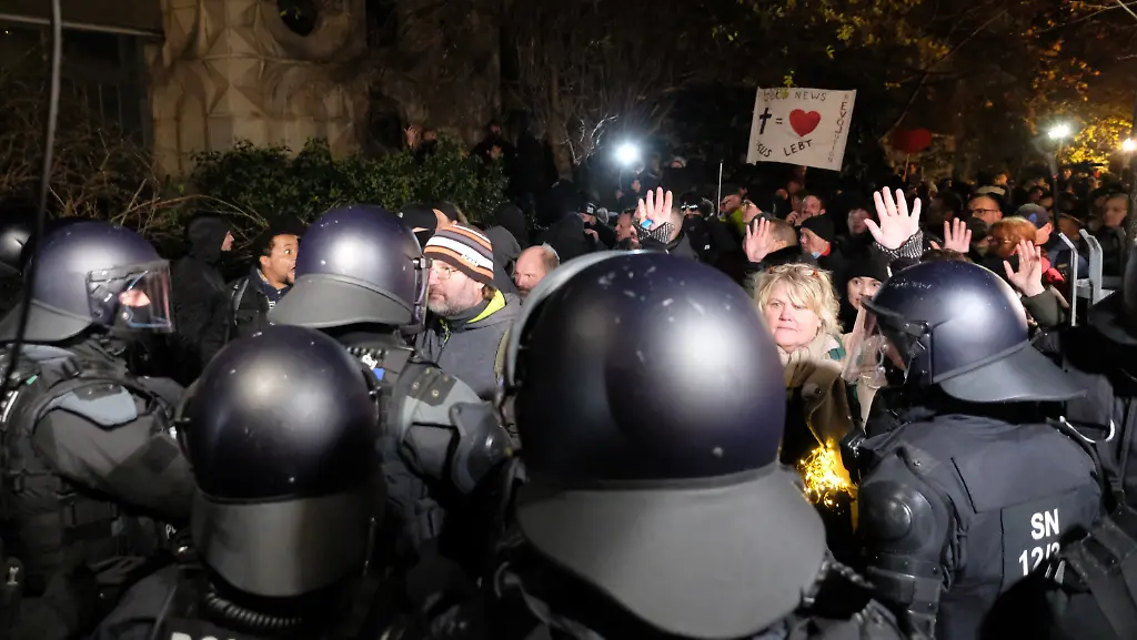Dabei setzte die Polizei nach Beobachtung eines dpa-Fotografen auch Pfefferspray ein. Später ließ die Polizei schließlich die eingekesselten Teilnehmer in kleinen Gruppen zum Bahnhof abziehen - Masken wurden dabei nur sporadisch getragen. Angesichts der Gegendemonstranten in den angrenzenden Straßen habe die Polizei schließlich einen Weg bereitet, sagte der Polizeisprecher. Linke-Abgeordnete kritisierten bei Twitter, dass dabei nicht deren Identität festgestellt worden sei. Der Polizeisprecher sagte, es habe Identitätsfeststellungen gegeben.