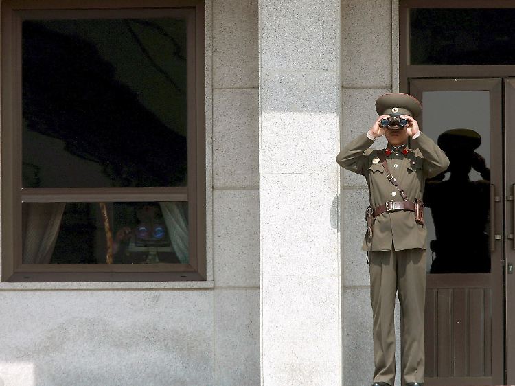 Ein nordkoreanischer Soldat beobachtet die Demarkationslinie in der Demilitarisierten Zone.