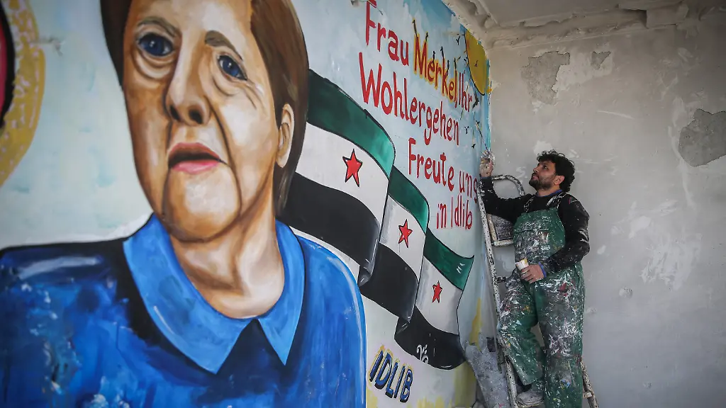 Unter Syrern genießt Bundeskanzlerin Angela Merkel große Sympathien. Nach ihrem negativen Corona-Test haben ihr zwei Graffiti-Künstler aus der Rebellenprovinz Idlib im Nordwesten des Bürgerkriegslandes nun in besonderer Form ihren Dank gezeigt: mit einem überlebensgroßen Porträt der Kanzlerin. Dazu ein Herz in Rot und der Text: "Frau Merkel, Ihr Wohlergehen freute uns in Idlib." Bilder davon machen seit Tagen in den sozialen Medien die Runde.