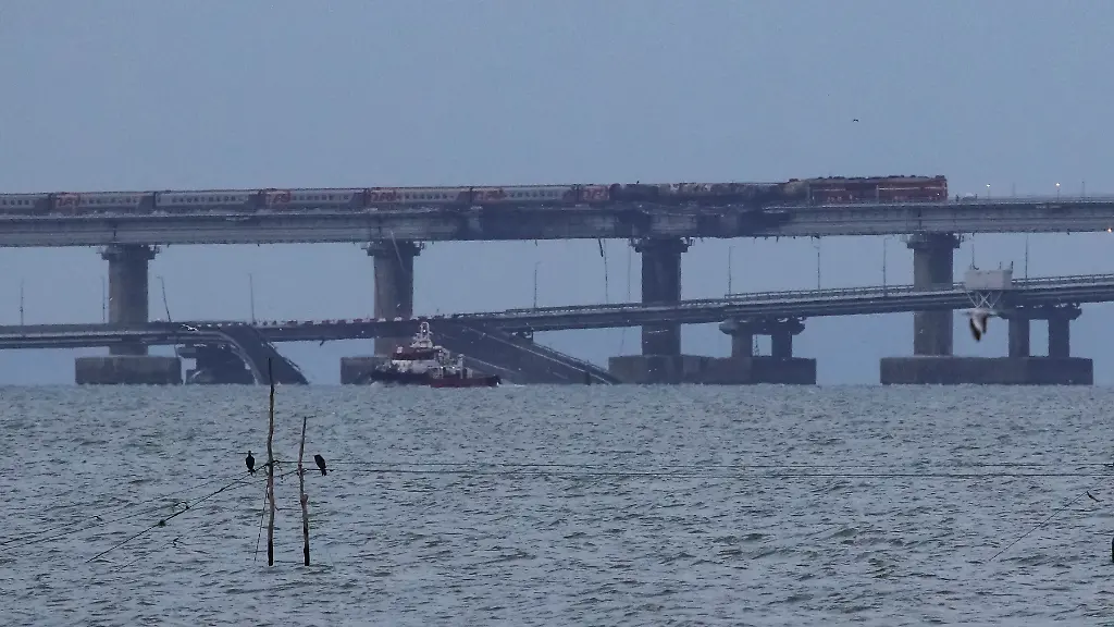Das Prestigeprojekt des russischen Präsidenten Wladimir Putin war 2018 vier Jahre nach Russlands völkerrechtswidriger Annexion der Krim eröffnet worden. Für Moskaus Kriegseinsatz in der Ukraine spielt die Brücke eine entscheidende Rolle, denn über sie wird vom russischen Festland ein erheblicher Teil des Nachschubs für die Soldaten auf der Krim und in der größtenteils besetzten südukrainischen Region Cherson geliefert.