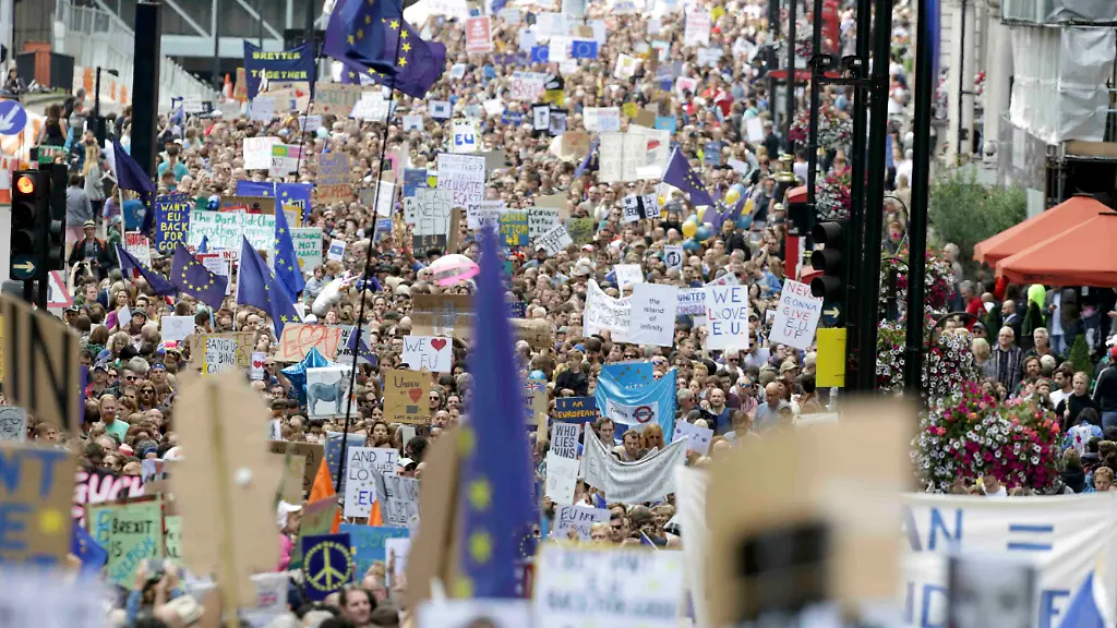 "Wir können den Brexit verhindern, indem wir das Referendum nicht als das letzte Wort akzeptieren und den Finger vom Selbstzerstörungsknopf nehmen", sagte der Organisator des Protestmarschs, Kieran MacDermott.