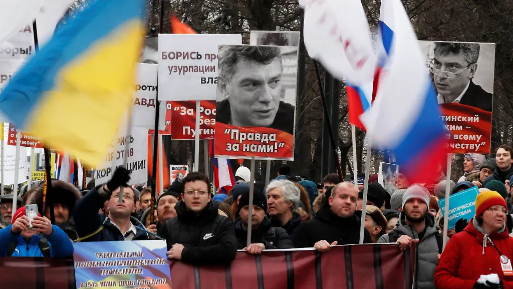 Auf einem Protestschild der Demonstranten stand "Putins Regime ist eine Bedrohung der Menschheit", ein anderes zierte unter Nemzows Bild ein Zitat des ermordeten Oppositionellen: "Putins Politik beruht auf reinen Lügen". Immer wieder skandierte die Menge "Russland ohne Putin", "Russland wird frei sein" und "Freiheit für die politischen Gefangenen". Sie forderten die Freilassung von in den vergangenen Monaten festgenommenen Russen, denen etwa Gewalt gegen die Polizei vorgeworfen wird.